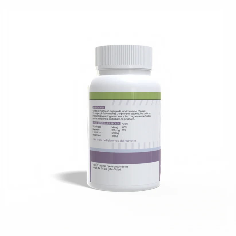 Vitamine B6 1,4 mg 100% VNR* Magnésium 112,5 mg 30% VNR* L-Tryptophane 100 mg Mélatonine 1,8 mg *VNR : Valeur de Référence du Nutriment.